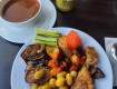 Еда норм, голодными не останетесь, мясо есть, всего хватает. Соотечественники ужасают всё больше и больше, очень тучные женщины, с очень тучными мужиками набирают полный стол еды и говорят друг другу, что тут есть, я же не наемся. Вообще процент толстых и прожорливых людей становится...