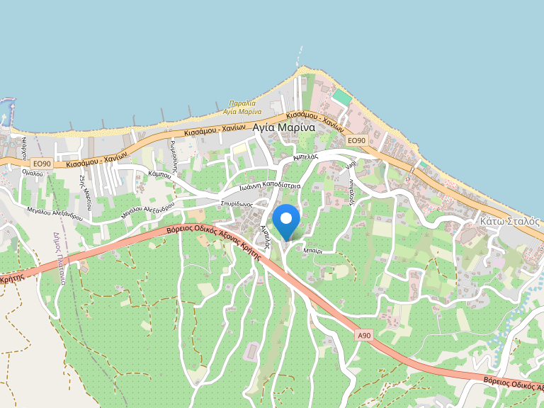 Отель расположен в Греции на острове Крит на песчаном пляже Айя Марина, в 9 км к западу от г. Chania и в 24 км от аэропорта.