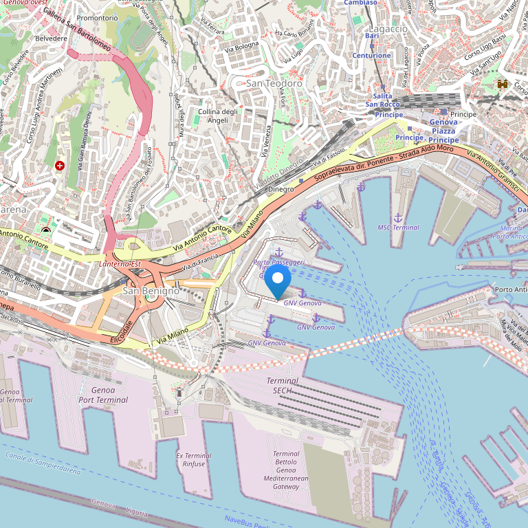 Отель располагается в городе Генуя, недалеко находятся Дворец принца и Маяк. Также неподалеку Bigo и Аквариум Генуи. Удобнее всего добраться до отеля Holiday Inn Genoa City из аэропорта Генуя (GOA-Кристофоро Коломбо) - 4,7 km / 2,9 mi.