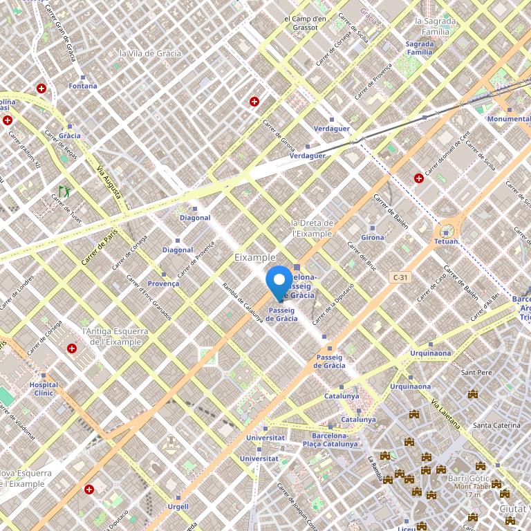 - расположен рядом с ж/д станцией Барселоны.