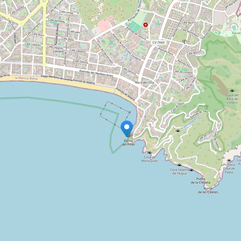 Отель расположен в Ринкон-де-Лойкс на берегу пляжа Леванте с видом на бухту Бенидорма.