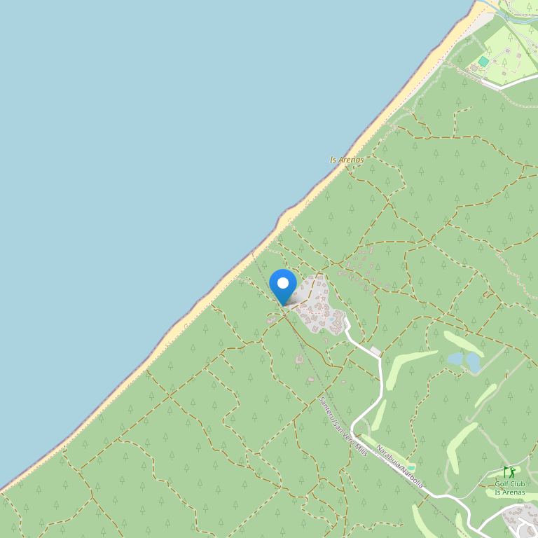 Отель размещен на западном побережье Сардинии, в захватывающей провинции Ористано. Отель находиться в красивом сосновом лесу, недалеко от водоема, где живут розовые фламинго. Дорога до международного аэропорта Кальяри Эльмас составляет 110 км, до аэропорта Альгеро Фертилия – 120 км, до аэропорта Ольбия – 170 км.