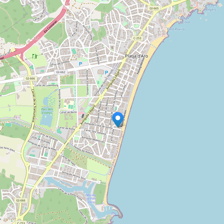 Отель расположен в Platja D'Aro, в 30км от ж/д станции. Международный аэропорт Barcelona находится в полутора часах езды от отеля.