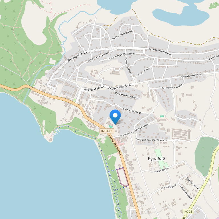 База отдыха расположена в центре поселка Боровое, рядом с отелем «Архидом», на берегу озера Боровое.