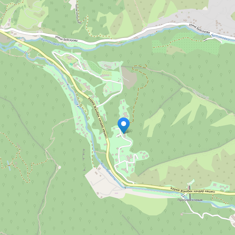 Отель расположен в экологически чистом районе города Алматы, по дороге к высокогорному катку Медео, в 20км от аэропорта.