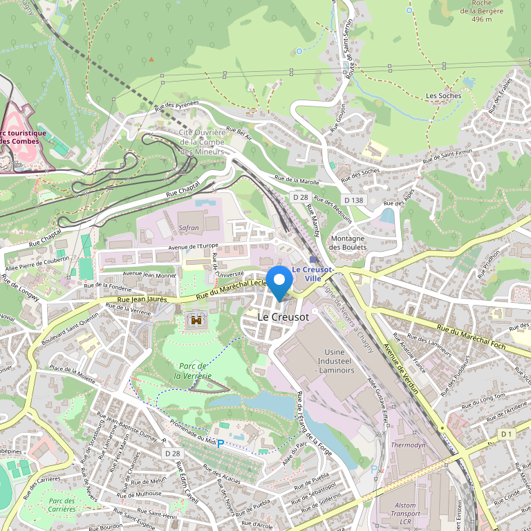 в 200 м от центра Ле-Крёзо, в 60 км от Дижона, в 150 км от аэропорта Лиона Сент-Экзюпери