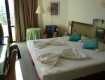 По приезду разместили сразу же, без доплат. Номер дали шикарный с видом на море,большой, кровать практически трехспальная)) вся мебель новая и красивая. Убирались каждый день.