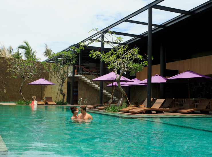 Этот небольшой, но очень уютный отель отличается оригинальным дизайном и экстравагантной комбинацией стилей: современные тенденции архитектуры гармонично переплетаются с традиционным балийским стилем номеров, а расслабляющая атмосфера способствует комфортному уединению новобрачных, приятному отдыху в кругу друзей и безмятежному семейному отпуску.