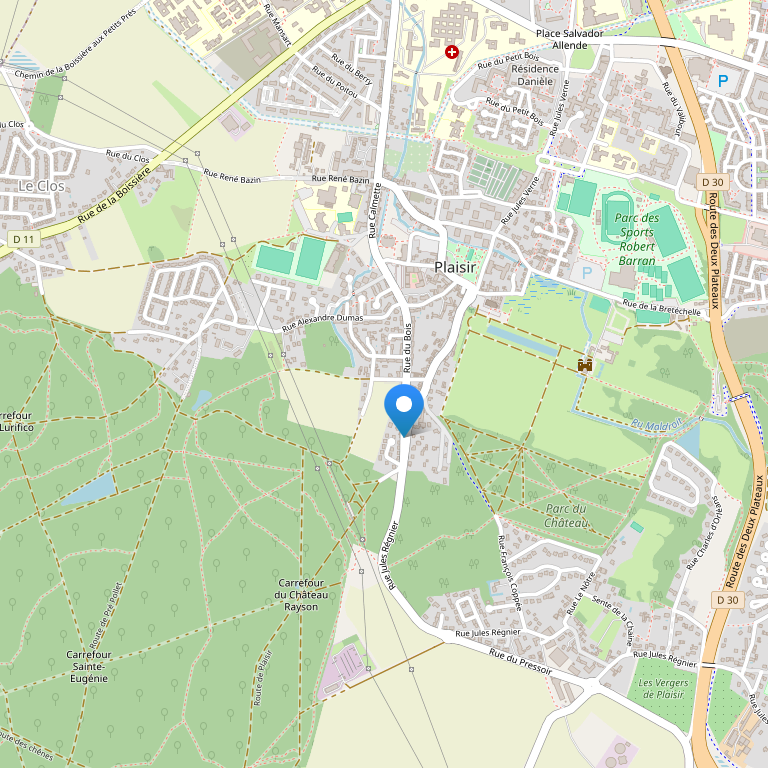 Отель расположен в бизнес-зоне Sainte Apolline в Плезире, в западном пригороде Парижа, в 30 км от центра города, до которого можно добраться по близлежащей национальной дороге N12 и шоссе A12. В нескольких минутах езды от отеля находится парк "Франция в миниатюре".