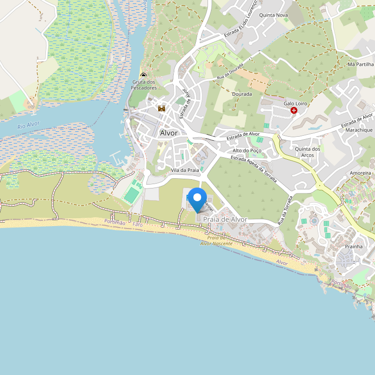 Отель расположен в поселке Алвор, в 10 минутах ходьбы (700 метров) от исторического центра поселка, пляжей Алвора и гольф-полей, недалеко от залива Алвор и пристани для яхт Portimão. Река Алвор – в 800 м отеля, пляж и водные виды спорта – в 1 км, поле для гольфа – в 1 км от отеля.