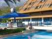 основное здание в виде пирамиды, находится на первой линии , на берегу моря. Холл огромный, светлый, крыша стеклянная и от этого ощущение пространста, светло.