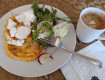 Ресторан. Питание на высшем уровне. На завтраках: сладкий стол, каши, сыры разных видов, мясные нарезки, фрукты всегда, овощи любые, всегда, салаты, пицца.