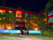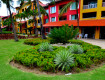 Отель очень веселой постройки, разные блоки выкрашены в разные цвета, крыши где ломанные, где с башенками и мансардами, где два этажа, где...