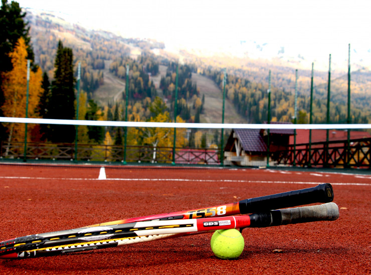 В летнее время: теннисный корт, волейбольная площадка, скалодром, каркасный бассейн