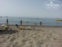На ресепшен отеля заявлено, что идти 300 м. Ну если идти через соседний отель, то возможно, но выйдя на пляж вы сможете не найти места. Мы ходили дальше, метров 500-700 от отеля. По дороге есть даже соответствующая вывеска Beach. Пляж песчано-галечный, вход в воду мелкая галька, в воде камни. Купаться без соответствующих тапок не очень приятно. Пляж награжден голубым флагом. Хотя в воде попадались пакеты, трубочки, крышечки. Но если люди - свиньи, с этим ничего не поделаешь.
