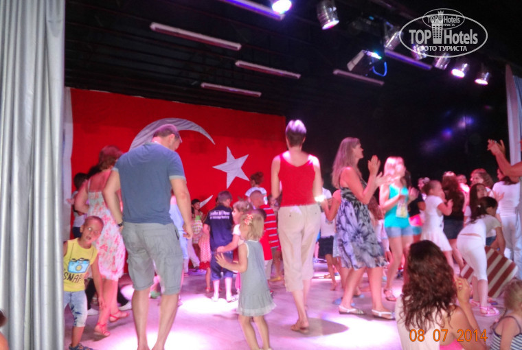 Анимация детская начинается в 8.00-8.30. Мест за столиками хватает далеко не всем. Так, что если хотите занять места бегите туда сразу после ужина. Длится час-полтора. За ней следует взрослая. В 12.00 отель спит. Мне больше всего понравилась команда из двух молодых парней и молодой девушки…детки пляшут от души, а родители с умилением на все это смотрят)). По четвергам идет анимация на пляже и детская и взрослая. Про взрослую ничего написать не могу, не присутствовали на ней. Про дневную анимацию тоже ничего не знаю, слышала, что детки красят красками футболки и тому подобное, но все ходили довольными!
