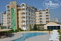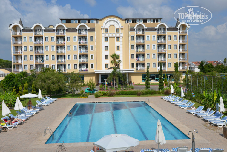 Всем доброго дня) Посетили данный отель в период с 10-17 июля 2014г. Путевку купили у "Лабиринта", ОГРОМНОЕ спасибо авиакомпании "Московия" за 2 дня задержки рейса, которое мы провели в аэропорту. Но даже данное обстоятельство не испортило нам настрой на отдых. Муж, сын 6 лет и я отправились за новыми впечатлениями в Турцию))) В полете провели примерно 2 часа 40мин и мы в Анталии. Путь от аэропорта до отеля занял 20мин. Отель выбирал муж по отзывам на топ Хотелс и фотографиям из отзывов туристов. В отель мы приехали в полночь, заполнили на ресепшн бумаги и попросили номер в новом корпусе, нам предложили переночевать в старом корпусе, а утром дать нам тот номер который мы хотим . Все просьбы и пожелания выполнялись работниками ресепшена на 5, все быстро и слажено. Утром после завтрака нас переселили в новый корпус в номер который нас всем полностью устроил))) Каждый день уборка в номере, персонал дружелюбный, всегда улыбаются, здороваются. Территория отеля нам понравилась, большая и ухоженная, каждое утро видели как садовники ухаживают за цветами. Бассейны все чистые, горки супер))) Море все дни было не спокойно, вода была мутная и мы почти все время проводили в бассейне, там и музыка и конкурсы и акваэробика))) На море ходит автобус через каждые 30 мин, от отеля до моря 5 мин на автобусе, дорога не напрягает, наоборот мини- экскурсия получается))) На пляже всегда есть свободные лежаки, так же там можно перекусить в баре от отеля. Питанием в отеле остались довольны))) Были и рыбные и мясные блюда и куча всего-всего ))) Ребенку очень нравился снек-бар там можно было перекусить гамбургерами и нагетсами, а еще там пекли оч вкусные пончики) Муж был без ума от морской рыбы, которую готовили прямо у тебя на глазах) Голодным тут точно не будешь. По поводу грязных тарелок и чашек...., да иногда попадались, но на такую ерунду внимание не обращали, мы приехали за хорошими впечатлениями а не изучать посуду)))) не понравилась тарелка, взял другую)))) В целом об отдыхе сложились только самые хорошие впечатления, особенно понравился Гала-ужин который проходит в отеле по вторникам) Отель советую семейным парам с детьми от 5-6 лет и старше, т.к. детского меню тут нет, также людям кто любит спокойный отдых, отель не тусовочный, молодежи в нем будет скучно. Огромный привет нашему "коллеге" фотографу ;) спасибо за советы))) Ну и пожелания отелю: хотелось что бы обслуживающий персонал в основном ресторане был пошустрее, не всегда удается найти чистый стол , а в остальном претензий нет. Если что то заинтересовало в моем отзыве пишите, отвечу на вопросы)))