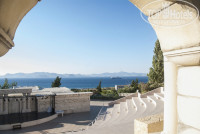 Начну с территории. Она очень большая. В комплекс Kipriotis входит пять отелей. Четыре находятся по соседству, а один чуть дальше, вдоль дороги метров триста-четыреста. По-моему Марис имеет лучшее расположение. Все очень ухожено, много зелени, все очень красива и радует глаз. Очень понравились олени, которые живут около отеля Panorama, очень любят фрукты, можно погладить и сфотографировать. К людям относятся хорошо. Если подняться к отелю аквалэнд, то там есть амфитеатр, откуда открывается шикарный вид.