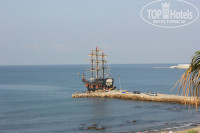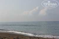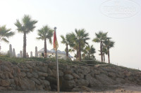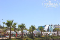 Территории нет никакой, но очень большие бассейны и даже мини-аквапарк. До моря надо идти сначала по мосту, который находится над дорогой. где ездят машины, а потом спуститься на лифте или на лестнице. еще очень каменистое море, несколько раз больно ударялись ногами, а так море очень чистое и теплое. Один раз были очень сильные волны, но нам они понравились.