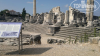 Рядом есть рынок, но выбор не очень большой. Можно доехать до Дидима, маршрутка проезжает мимо отеля, можно легко доехать. Водителю называешь место куда нужно и он довозит. Там есть храм Аполонна и много магазинчиков рядом с центральным пляжем, рекомендуем посмотреть. Нам понравилось и добираться легко, дети не устали.