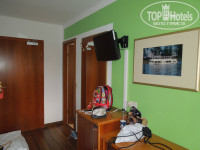 Мы заметили отличия в обстановке в номерах, так как жили все по трое. В одном номере была двуспальная кровать и матрас, в другом три односпальных кровати или кресла, в третьем - двуспальная кровать и диван. К тому же вид из окна был у одних на внутренний дворик и соседние дома, а у других на улицу.Назывались эти номера все стандартными, хотя условия проживания вот так разнились. В комнате, помимо кроватей, шкаф с несколькими вешалками, стол письменный, тумбочка, отлично работающий телевизор со множеством немецких каналов. Стояла еще штука, похожая на кондиционер, но она не работала, и у нас ее забрали. Балкона нет, окна открываются по стандартной схеме: или чуть-чуть сверху, или на всю сбоку. Постельное белье, занавески, полотенца - чистые. Меняли полотенца, вроде бы, один раз за неделю. В ванной душ, туалет, раковина, фен. есть также шампунь\гель для душа и мыло, разумеется, туалетная бумага. То, что заканчивалось, вовремя меняли и в целом, ничем обделены мы не были. Уборка проводилась хорошо: ни разу не натыкались на персонал в нашем номере, все всегда было чисто. заметно даже, что делали именно влажную уборку.