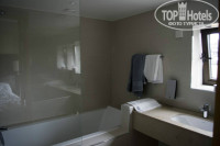 Санузел новый и блестит, большая ванна, единственно, залазить в нее неудобно - широкий и высокий бортик. Из принадлежностей - мыло, шампунь в дозаторах, полотенца.