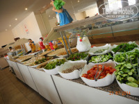 Как-то даже я только собралась завтракать, забыла, что кофе не налила, отошла на минутку, прихожу, а моей порции уже нет… А я старалась, яичко себе уже расчистила… Так что грязной посуды на столе точно не увидите и всегда можно было найти свободный столик.