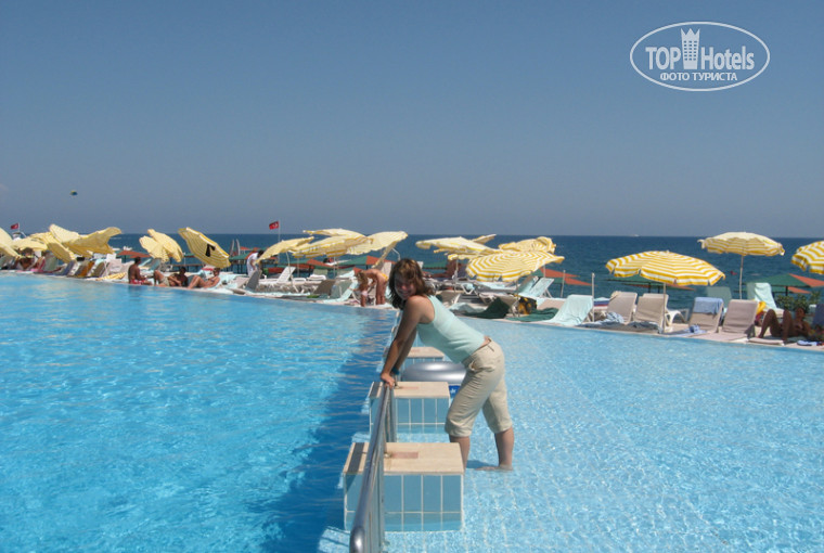 Я была с 28 августа по 6 сентября со своим молодым человеком.Отель очень понравился!Что касается еды,то завтрак , обед и ужин мне понравились в основном ресторане, было мясо (курица, говядина), всякие гарниры (рис, макароны, баклажаны), картошка фри, лепешки,овощи (огурцы, помидоры),гренки,омлеты,яичницы,арбуз,дыня, йогурты, всякие сладости (мне не понравились), много салатов (на мой взгляд кислые, но это на мой взгляд), сыр (брынза и ещё такой плетеный, но не копченый).В баре есть кола, фанта, спрайт, водка, раки, джин, тоник, иногда ликеры (блу гаваии и ещё парочка).Что касается бара я думала, что он будет более расширенный, но сильно не растроилась, т.к. мы купили в дюти фри мартини и джин и нам этого было достаточно.В номере убирались каждый день.Кондиционер работал исправно.В бунгало нам безумно понравилось.Был один минус, но нас он не коснулся: нас поселили в бунгало, которое находится недалеко от другого отеля и до двух ночи у нас очень сильно гремела музыка, даже было ощущение, что стены дрожат от басов, но я засыпаю под любой шум и мой молодой человек тоже выматывался за день, так что мы спали как убитые ))).Нам очень понравился кальян, стоит 10$.Я была три раза в сауне на территории отеля (сауна бесплатная), сауна хорошая, народу мало. Там есть душ, бассейн, сок.Температура в сауне около 80 градусов, но можно и поддать.Взяла 1 раз платный массаж за 35$, очень понравилось!Я вообще первый раз ходила на профессиональный массаж. В общем после сауны они обливают из кувшина, потом обтирают рукавицей (пилинг), потом вытирают намоченной в пене наволочкой, массажируют, потом идёшь в их каморку,они натирают маслом и массажируют, потом делают маску на лицо.Есть ещё бонусы: 1 раз можно бесплатно прокатиться на банане и на водных лыжах.Что касается цен, то мы были на дайвинге, рафтинге,в аквапарке, катались на яхте в Анталию,катались на квадрациклах,катались на джипах. Все экскурсии нам обошлись в 580$ на двоих без доп. расходов.Экскурсии брали через Anex Tur.Все экскурсии интересные, когда катались на джипах , нас поздно вечером отвели к горе Олимпус и мы 900 метров взбирались по ступенькам в гору посмотреть вечный огонь, очень красиво! Квадрациклы не понравились, т.к. скорость очень медленная, катались по кругу друг за дружкой и у половину квадрациклов не работал тормоз.Рафтинг офигенный.Аквапарк мы выбрали Дедеман, нам он понравился, но лучше выбирать всё таки Трою, говорят там больше горок.По поводу покупки сувениров нас гид надул немного. Сказали езжайти на экскурсию в Анталию на яхте, там будет остановка на покупку сувениров, будет дешевле. Оказалось, что всё дороже в разы.На территории отеля можно купить те же самые сувениры и дешевле.Анимация интересная, я не фанат, но так посмотреть от нечего делать можно.Там была стрельба из лука на территории отеля, прикольно , попробовали. Всё понравилось, впечатления очень положительные от отдыха. Как будто отдыхали в райском уголке - любимый мужчина, море, вкусная еда, удобный номер, экскурсии. По поводу купания ничего страшного в пирсе не было, там и лесенка есть спуститься в воду и прыгнуть можно, поэтому не напрягало совсем то, что берег был в камнях.