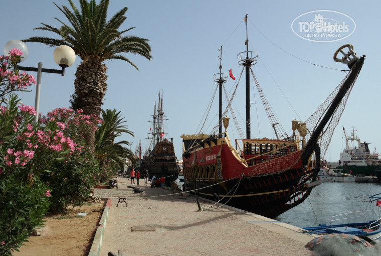 В Тунисе первый раз. Предварительно начитавшись отрицательных отзывов о данной стране в целом, ехали с опаской. В отель прибыли около 4 часов утра по местному времени (это на 3 часа назад от мск). Заселение, как известно, в 12 часов. Чтобы не сидеть в холле все это время, пришлось отдать по 40 долларов за комнату (путешествовали вчетвером, подобного номера не оказалось и нас заселили в 2 номера, расположенные напротив друг друга). Итого, отдали 80 долларов сразу))). Номера не плохие: на втором этаже, с балконами, один их них с видом во двор, на бассейн и аквапарк, другой-на тихий зеленый проулок между отелями и на кусочек моря. В номерах убирали каждый день, полотенца также меняли, про постельное белье-сомневаюсь. По-моему, просто "перезаправляли" кровати, не меняя простыни. Мы оставляли по пол динара в день чаевых. Кормили много и часто. Преимущественно овощи, много капусты в разных интерпретациях, на ужин арбуз или дыня, мороженое. Аквапарк работал с 10 до 18 часов, с перерывом на обед. Пляж хороший, чистый, шезлонги и матрасы бесплатно. Первый день очень приставали местные жители к женской половине нашей компании-очень и очень навязчиво, даже хамовато. Потом на пляже появилось что-то вроде охраны-молодой мужчина в футболке с надписью "staff" и с рацией и сразу все наладилось. В отеле очень много детей, около 21 часа для них танцы с аниматорами, потом, около 22-23 часов аниматоры развлекали взрослую часть отдыхающих. Программы разные-что-то типа фокусов, были пародии на известных музыкантов и караоке. Персонал корректно-вежлив, но резковат, по русски практически не говорят и даже не напрягаются, чтобы понять, очень раздражаются, если не находишь общего языка. Начитавшись предварительно про большое количество краж из номеров, мы сняли ячейку, где хранили паспорта и деньги. В номерах все равно приходилось хранить фотоаппарат, планшет и телефоны-ничего не пропало. Зато пропала золотая цепочка с кулоном, которую хранилась в косметичке, запрятанной в сумку. Вроде и не на виду была. ((((( В город выходили каждый день по нескольку раз. Передвигались в основном на такси-от 3 до 7 динаров. Ездили в Мидину (там крепость и хороший дешевый магазин сувениров и в Порт-там просто красиво). Город очень грязный. Вечером, после 21-22 часов гулять приятнее-грязи не видно, кругом яркие огни рекламы, очень празднично, много местного народа, но никто ни к кому не пристает)). Из экскурсий-ездили в зоопарк. Понравилось. В общем, впечатление от отеля весьма хорошее, ничем не уступает египетским 4+.....Но второй раз в Тунис не хочется)))))...P.S. В день отлета нас привезли в аэропорт за 3! часа до отлета, рейс задержали еще на 45 мин. В зале ожидания работали бешеные кондиционеры и, по приезду, наши дети слегли с высокой температурой и отитом....но это уже отдельная история))))))))))))))))