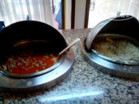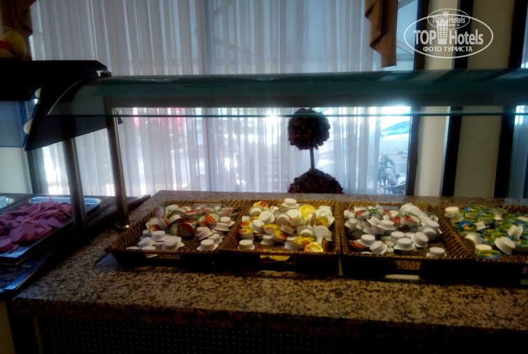 Еда, если её можно так назвать, оставляет желать лучшего. На завтрак их сосиски с колбасой, которые в рот не лезут, салат и яица. Обед суповой набор, который есть не возможно(желудочки, сердечки), печёная картошка и тот же самый салат, причём салаты из огурцов и помидороа, марковки, свеклы и редиски с майонезом были постоянно скисшие! дети просто есть это не могли и постоянно жаловались. На ужин давали то, что не доели на обед и конечно же всё было холодное. Мы сначала думали, что мы поздно приходми, но нет, специально пришли за час до ужина и в 19:00 дали все блюда холодные. На инфо встрече мы сообщили гиду, что тут есть нечего, на что нам был дан ответ это же 3, хотя и в 5 бывает хуже питание, а в 3 лучше чем в интермаре. На следующий день появилась курица. Как-то дали куритые наггетсы за которые люди практически дрались! Расхватали их за 5 минут! На следующий день униж дали на 30 минут раньше, во избежании такоего столпотворения. Вообщем, там всё расчитано на то, что бы все ходили кушать в кафе. Только тогда я не понимаю, зачем платить за ол он клюзив? Соки платные в баре, если приносишь с собой еду и питьё они на тебя смотрят как на врага народа и постоянно хотят это забрать типа они думали, что это уже пустое. 1 раз накормили нормально, когда у них закончился пост. Дали на гриле курицу и баранину за которой очередь безумная была. Делали по 3-4 подхода, чтобы хоть как-то наесться, но когда повар просекал, что он тебе уже давал порцию, то он отварачивал людей. Ещё заметила такую особенность, что иностранцам давали большие порции, а русским самые маленьеие. Кстати, т.к. территория отеля свободна для входа и выхода, то и в бассейне и в столовой были не только постояльцы нашего отеля, т.к. потом выяснилось, что есть отели в которых кормят ещё хуже.