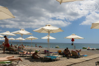 Лежаки с зонтиками - платные. Пляжных полотенец нет. Носили свои собственные. Однажды после утреннего купания ставили полотенце с надписью Родос на купленном лежаке. Вечером мы его (полотенце) уже не нашли...