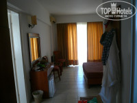 Плюсы: отличные номера. у нас был 2-х комнатный, все чисто, мебель хорошая, телек норм, большой балкон. Убирали каждый день, полотенца меняли каждый день(да, не белоснежные, но без пятен и чистые), белье пару раз. С/у с ванной! сантехника в порядке. Холодильник бесплатный.