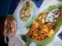Ужинали в разных кафе. Готовят тоже очень вкусно. Попробуйте спчик "Том-ям",супчик какосовый. Пальчики оближешь!!!Не пожалеете!!! Наш отпуск подходил к концу,нам подсказали что есть кафешка "Красный лук",рекламный щит весит наверху(лук).Так вот,там можно покушать намного дешевле,чем в других кафе. Туда надо идти пораньше чтоб попасть. Не пожалели,за троих отдали примероно 800 бат. Эта кафешка находится как идти на базарчик (к храму) по левой стороне дороги. А если надоела ихняя пища,по той же сороне есть руссая кафешка "У Иваныча",сами хозяева русские. Там тебе и окрошка,и котлеты с картошкой,и борщ,и суп. Выбор большой.