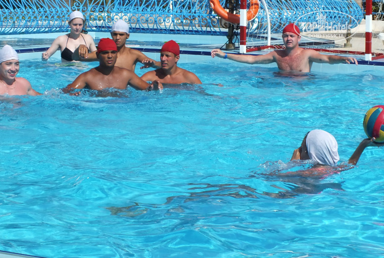 В 10 часов начиналась зарядка прямо на пляже) очень здорово и приятно) в 11 волейбол, в 12 водная аэробика. мы старались ничего не пропускать, все было очень весело. В 3 часа начиналось водное поло (всем советую попробовать! эмоции отличные!)