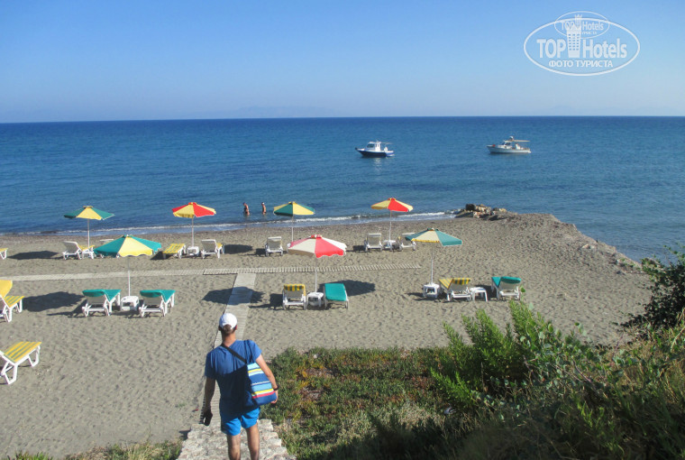 И немного о самом острове. Если вы были например на Закинтосе, то Родос может вас немного разочаровать, но все равно, конечно, он красив, как и вся Греция. Если вы остановитесь в Сабине и возьмете на прокат машину, то самый ближайший приличный, песчаный пляж находится километрах в 15-ти , местечко Камирос. На пляже бесплатные лежаки с зонтиками, wi-fi, таверна, бар, из которого можно заказать что-нибудь и принесут вам на место. Всё чисто, приятно и вкусно. Здесь же рядом развалины древнего Камироса, раскопки с видом на Эгейское море. На этот пляж мы ездим по утрам после завтрака, потом обедаем на обратном пути в отель, отдыхаем и часа в 4 дня едем по красивым местам и вечером купаемся на разных пляжах.