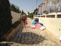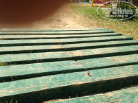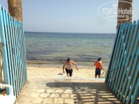 Дощечки к берегу с гвоздиками. Будете идти, смотрите под ноги. Выход к морю ужасный, само море еще хуже у этого отеля. Метр песка от проволоки до прибоя, и купайтесь, в мусоре, с медузами и прочим. Если уж совпало и вы неизменно едете в Монастир, то купаться мы ездили в Эль Кантауи. Это тур район за Суссом, там цивильно. На территории отеля мы никогда не купались в море…НИ РАЗУ.