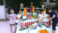 3. Еда. Поесть можно всегда и везде. Очередей за едой нет. Все супер, разнообразно. Ооооочень вкусно готовили различную рыбу и мясо на углях. Запеченные овощи с соусом, турецкие сладости, много фруктов. Хорошее сухое вино, неплохие коктейли с джином и ромом. Минус - не было нормальных соков для детей, только порошковые. Вода есть везде и всегда без ограничений, что есть огромным плюсом. Бармены все очень приятные, обслуживают быстро и с улыбкой. Особый привет Тунджаю.