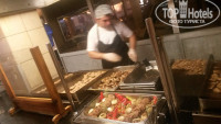 Питание в отеле отличное! Готовят множество разных блюд. Говядина, курица, индейка, рыба. На гарнир картошка, спагетти, макароны разной конфигурации, рис, картофель фри, овощи гриль, тушёные. Конечно, овощи были и в других видах (свежие, жареные, солёные, маринованные). Из фркутов были арбузы, дыни, персики, сливы, яблоки, апельсины и мн.др. Большой выбор соусов, джемов, варенья, паст. Огромное количество разнообразной выпечки и сладостей. Есть питание для детей. Для них вообще отдельный стол. Особенно отличается утренний выбор блюд: сухие завтраки с молоком, каши, яйца вареные и яичница, тосты на гриле, блинчики. Голодным никто не останется. Еда совсем не острая. Места в ресторане находились всегда особенно на завтрак и обед с избытком, на ужин народу гораздо больше, но мы приходили чуть позже и спокойно садились на одно и то же место.