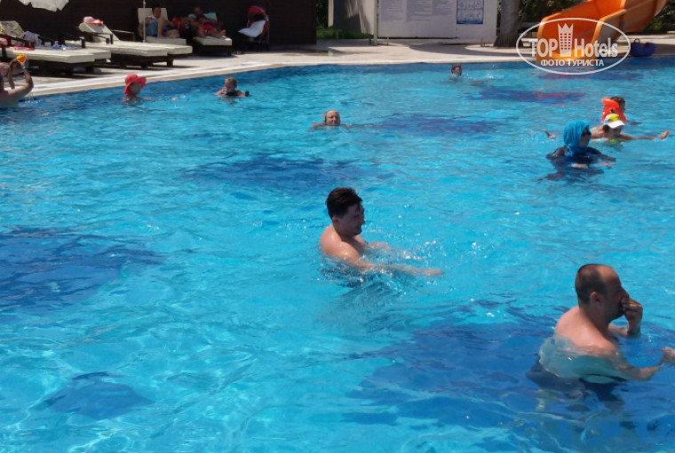 Брали номер без балкона (решили сэкономить, учитывая стоимость путевки на 2-х за 9 ночей 70 тыс.руб.). На фото отеля показаны номера с балконами, которые значительно больше ,чем номера без балконов. Хочу так же подчеркнуть, в отели 3 вида балконов (французский, просто балкон, и что-то типа террасы). При покупки нас немного ввели в заблуждение фото отеля, да и в турфирме сказали ,что номер без балкона это как раз номера с франц.балконами.Вообщем номер у нас был 2142, не самый худший вариант,т.к. смотрели альтернативу - все еще хуже могло бы быть.Номер просто крошечный, чистенький , мебель немного "уставшая" но в целом неплохо. Если бы еще была бы хоть какая-то звукоизоляция,то отелю можно было и "натянуть" оценку 4.Кстати , если купили уже путевку в этот отель - купите беруши, это поможет сгладить негатив. Что бы понимали про что я - слышно как храпят в соседнем номере, тоже с анимацией,учитывая что музыка орет до 23.30 поспать или отдохнуть на территории не получиться днем точно.