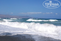 В первый день как приехали было землетрясение, поэтому море штормило и никто не купался. На второй день утихло немного и были классные волны (взяли круги и матрасы и весь день не вылазили из воды). Пляж песок у лежаков, ближе к морю камни, заходите в море по камням (но они не напрягают), и потом уже когда по пояс песок везде. Глубина сразу возле входа. С маленькими детьми не покупаться особо. Разместили очень хорошо, у нас три номера были все одинаковые стандартные (две комнаты + туалет+балкон) в прихожей кухня есть у всех номеров как я поняла. Анимации и тусовок в отеле нет. Кормят очень хорошо (всегда что-то новое, каждый день тематический вечер- азия, латинская, итальянская,рыбный день, критский вечер). У нас было все включено (пиццы, бутерброды, салаты, мороженое, фрукты, напитки в теч.дня). В ближайший городок можно дойти пешком минут 20 или доехать на такси за 7 евро. Брали машины на прокат (ездили в аквапарк - неочень понравился, и на Элафониси - розовый песок, этот пляж местные называют Мальдивы, ожидали большего от него, очень много людей там). Дороги в основном серпантин и много мест очень высоких, кто боится высоты, будет в напряге всю дорогу. Есть большой теннис (бесплатный)
