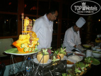 Питание отличное. Я не знаю, что привыкли есть люди, которые не довольны.Мясо, птица, рыба в разных вариантах, овощи, естественно, всякие, причем салаты можете составить себе сами и заправить по своему желанию. Большинство блюд со специями, но вполне можно подобрать что-то нейтральное. Было и детское меню. В обед кроме всего прочего обязательно жарят что-то у бассейна на открытом огне - то какие-то котлетки, перепелки, куриные крылышки..... И это при том, что в баре в 11 часов картошка фри, гамбургеры, пицца и прочее. Если хотите на вынос, вам предложат одноразовю посуду, приборы в индивидуальной упаковке. Кофе, мороженое Мовенпик вкуснейшее. Ближе к вечеру начинается подготовка к ужину. Это целый ритуал!По берегу бассейна выставляются столы, раскладываются салфетки, расставляются на столы лампы и ведерки с бутылированными колой, фантой, спрайтом. Возле каждого ресторана на открытом огне что-то готовится. Мы облюбовали Азиатский ресторан. Были и лобстеры, и королевские креветки, и суши делали прямо при нас.....По вечерам у каждого бара своя жизнь. У одного детская анимация, у другого саксофон, у третьего живая музыка.... И народ попивает коктели, танцует... Причем, все это одно другому не мешает, т.к. отель построен очень удачно.
