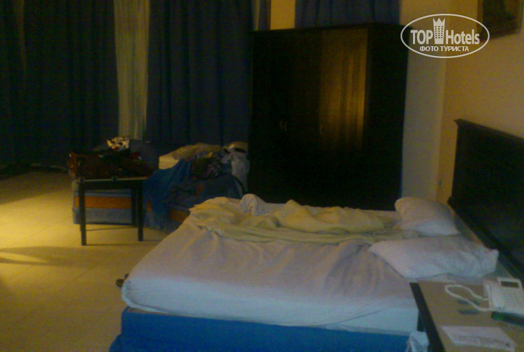 Напишу не много.При заселении попросили денег за хороший номер.На утро позвонили и напомнили что за номер надо поблагодарить-а к вечеру вообще возмутились-ШЕРИФ( так его звали) ждет а благодарности нет-отдали 10 баксов шоколадку чтоб отстал-номер плохой. Друзьям дали номер с большой ванной но без окна-окно у них было в двери(кондишь там работал с перебоями) Нам дали большой номер с двумя большими кроватями и окно во все три стены(закрытые шторами- единственное что понравилось)остальное -матрац одна яма большая скатываешься в середину,постельное белье серого цвета не меняли вообще.ванна-дверь ее при открытии упиралась в унитаз и чтобы пройти дальше надо закрыть- не пролезть потому что, перед лицом раковина. душа нет- там ванна не закрывается даже шторкой и вся вода льется на пол и не куда не девается нету там дырочки.бросаешь полотенце чтобы впитать воду. розетки вываливаются и не работают некоторые. Рядом идет стройка и мусор не прикрыт от этого вид не очень.Тут одни минусы...