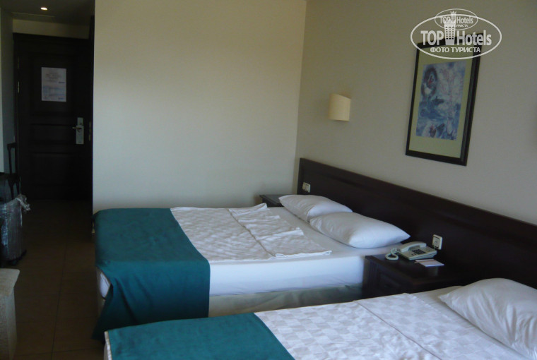 Привет всем. Отдыхали мы в Турции впервые и ни о чем не пожалели! Жара,солнце,воздух,погода просто шик! Отель супер!!! Первая линия! Территория отеля,корпуса,бассейны,развлечения и т.д. Все на высшем уровне! Жили мы во втором корпусе и очень даже довольны,что не в первом. Позже поняли смысл заселения. В первый корпус заселяют в основном молодые пары. А во второй корпус семьи.Весь день играет музыка и,чтоб отдохнуть немного,второй корпус сам то для отдыха! Ребятишки с бассейна не выходили целыми днями. Конечно мы ездили и на экскурсии.Об этом отдельный разговор. Мы в полном восторге от прогулки на Яхте. От поездки на джипах по историческим места города Алании. Что можно сказать о пляже. то что там мелкая галка-нас совсем не напрягло.Ребятишки играли в песочке на берегу,а купались как бы в отгороженном заливчике также на берегу.Я получила полный восторг от волн. Ресторан!!!!ОООООО!Кормят в отеле на убой!Питание разнообразное!И курица,и баранина,и рыба!!!Фруктов просто завались,что хочешь и сколько хочешь! Программа по вечерам-ну здесь на любителя!!!Деткам весело было,хоть и каждый день все было одно и тоже.В любом отдыхе можно найти плюсы и минусы. Хочу с вами поделиться отдельно еще и о фотографе отеля.Настоящий профессионал своего дела!!! Рекомендую фотосессию!!! Он подарил нам еще одно прекрасное мгновение для семьи.У нас была первая семейная фотосессия. Спасибо Вам!!!