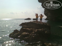 Пляж, идти не далеко 5-7 минут, по дороге можно купить мороженное 1 доллар, клубника 4 дол за 1кг. Камни в море особо не мешали, можно сразу лечь и поплыть. Песок да грязноват, много окурков, и на море бывала муть. А вот на Диком пляже мало народу, вода чистая , а красота какая!!!