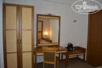 Сам номер расположен на первом этаже, он двухкомнатный, но комнаты небольшие. Свеженький ремонт, мебель слегка пошарпанная, но в целом - все довольно уютно и чисто. Вид с балкона на сад с лимонами. Уборка номера ежедневно, кроме среды, полотенца меняют по вашему желанию, белье нам меняли раз в три дня примерно. Полотенца для пляжа можно получит по карточкам в СПА-центре, там, кстати, есть крытый бассейн, тренажерный зал, финская сауна и Хамам (где так нравилось плескаться водой сыночку) .