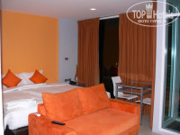 Дали номер на 7 этаже, лифт исправно работает (большой). Номер чистый, комфортный, приятно удивило, что это студия, есть кухонная зона (холодильник, микроволновка, кух.гарнитур, посуда), окна от потолка до пола (есть плотные шторы), вид открывался красивый на море, санузел совмещенный, тоже очень чистый, новая сантехника, у нас была большая 2-спальная кровать, постельное белье и полотенца свежие, новенькие. В общем, от номера мы были в восторге.