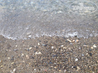 Пляж. Через дорогу (никакого пешеходного перехода, но движение слабое, перейти легко), пляж - песочный, но при входе в воду галька!!! 1-2 метра гальки, крупных и мелких камней! Никакого пандуса! За два дня до нашего отъезда, после шторма или прилива, появились места где можно зайти в море по песку без камней. Возможно, вам повезет. А возможно нет. На пляже только безалкогольные напитки и страшненькие булочки