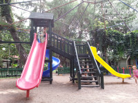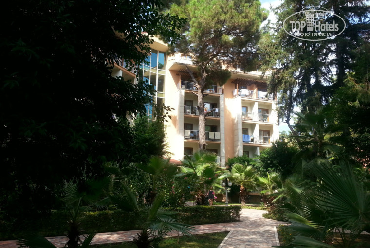 Каплан находится на... э.... не первой линии от моря, а, скорее, на 4-й или 5-й :) Правда это абсолютно не мешает жить. От отеля ходит машинка (по расписанию с 9 до 18 через 10 мин, но это вранье! В реале с 9 до 12 и с 14 до 17.30-18 с промежутками типа: какводителюзахочется). Лучше всего ходить пешком - улица с соснами и пальмами, хоть какой, а спорт, по крайней мере - нас не напрягало. На территории 3 бассейна - основной, между корпусами, и детский, с маленькими горками, с рядом стоящим "аквапарком" - 3 разные горки с бассейном. Много зелени, дорожек и мест где погулять/посидеть. Есть диско-клуб, открытая сцена для анимации, небольшое кафе у бассейна.