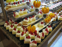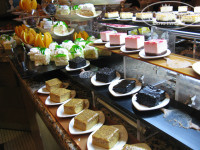 Никто их не гоняет даже. Угостили одного кота мясом из гуляша, он залез и стал лапой цапать коллегу, мол, дай еще)) мило, но поесть не давал. Мне собственно только сладкое понравилось – большой выбор и несладких десертов и для сладкоежек, был арбуз и дыни – арбуз классный, дыня никакая. Зеленая и безвкусная. Сливы были вкусными, персики твердыми. Много зелени, оливок, сыров, но мясоедам не в этот отель. Да, на завтрак жарили вкусную яичницу и блинчики, но постоянно ими питаться - то еще удовольствие.