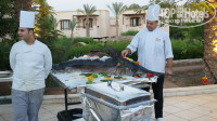 Замечательные блюда, вкусные и разнообразные. Отсутствие очередей, наличие свободных мест и чистых столов. Хорошее пиво и нормальное вино. Режим работы основного ресторана вполне подходит для любого режима питания. Два дня в неделю тематическая кухня, нам очень понравилась. Среда - национальная, пятница - Гала вечер с накрываем перед ужином возле главного бассейна фуршетного стола с коктейлями и легкими закусками. Общее впечатление от основного ресторана подпортили только: нехватка солонок и зубочисток, дешевый кофе и откровенно-столовский чай. В ресторане установлены кулеры, но функция нагрева воды в них отключена. И даже если принести пакетик чая с собой, то кипятка не найти. Кипяток можно было взять только в баре, попросив у бармена. Странно, что хозяин отеля не понимает, что из-за копеечной экономии сильно теряет рейтинг. Большой ассортимент чая в пакетиках и свежесваренный кофе были только в барах. Зато за весь отдых мы не встретили ни одного не то что пьяного, а даже подвыпившего человека. И только за день до отъезда в обед увидели русского из разряда «быдло»: деловой, упитанный, в стильных очечках, в джинсиках и в расфуфыренной рубашке с длинным рукавом, приехал он один. Как-то сразу сложилось впечатление о неадекватности данного товарища и действительно – к ужину он был в уматину пьян, лез обниматься к официантам (мужчины) и угощал их шоколадками. Неприятное впечатление, особенно учитывая спокойные 12 дней.